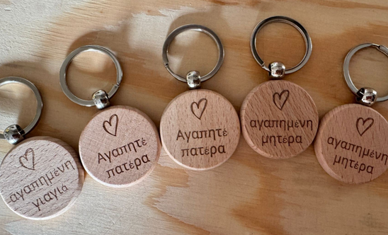 Deze leuke sleutelhangers, in het Grieks, mocht ik voor dezelfde klant maken als de Griekse geboortebordjes. Persoonlijke sleutelhangers, speciaal voor de kersverse vader, moeder en oma. Een klein, maar bijzonder aandenken dat overal mee naartoe kan en telkens weer herinnert aan dit mooie nieuwe hoofdstuk.